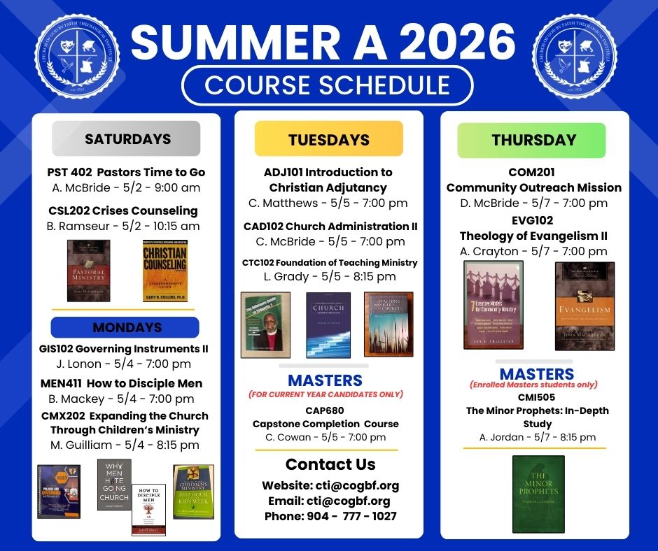 CTI IS STABLE – The Church of God by Faith was founded in 1914. As early as 1926, quality education and training was provided for leaders. In the year 1959. The training was organized into what was called the Examining Board. In January 2016, the program was made available online and relaunched into what is now called the Church of God by Faith Theological Institute.